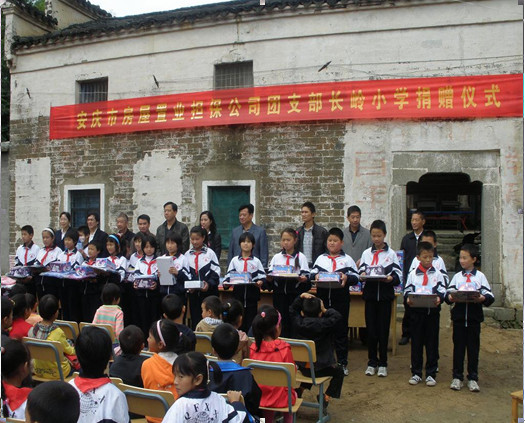 9月29日,安慶市房屋置業(yè)擔(dān)保公司團(tuán)支部組織團(tuán)員青年一行18人,來到桐城市唐灣鎮(zhèn)長嶺小學(xué),向該校師生捐贈(zèng)了價(jià)值7000余元的學(xué)習(xí)用品及服裝等物資。桐城市團(tuán)市委、唐灣鎮(zhèn)政府相關(guān)領(lǐng)導(dǎo)及該校師生100多人參加了此項(xiàng)活動(dòng)?! ?br />